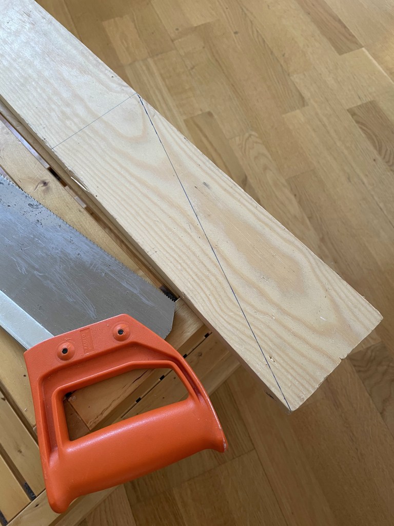 So, I came up with a simple solution. Using regular Ikea-consoles (the cheapest one there is?) and simply sawing a board of wood into two wedges. It worked out pretty well.