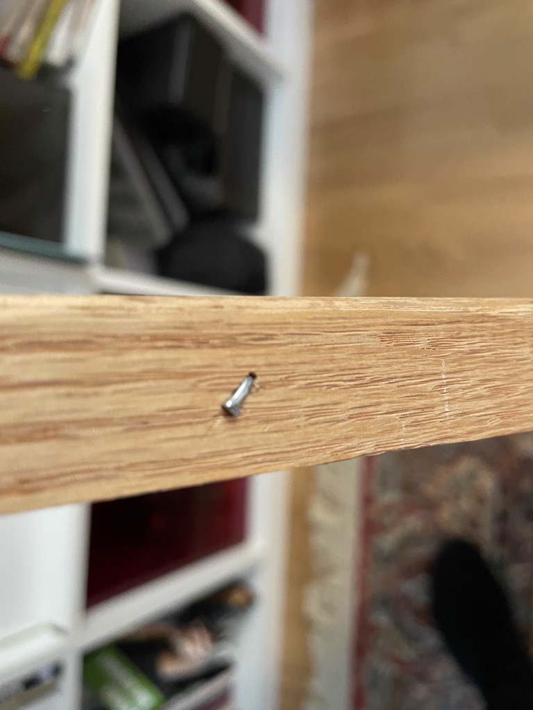 So, a shelf above the desk was needed. An angled shelf seemed the best for visibility and being able to see and control the gear there. I looked around for angled consoles, but I didn’t really find any. Or they were too expensive. So, in the meantime I put up a horisontal shelf like below. Didn’t really work.