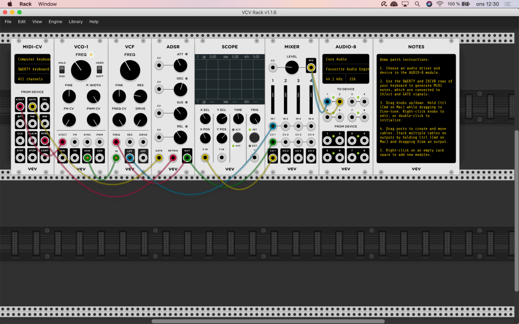 This will be my dashboard for the coming weeks. VCV Rack – the free open source, virtual modular synth. It will be the platform for the course I’m taking in Sound Synthesis. I already had it installed but my previous attempt was pretty intimidating.